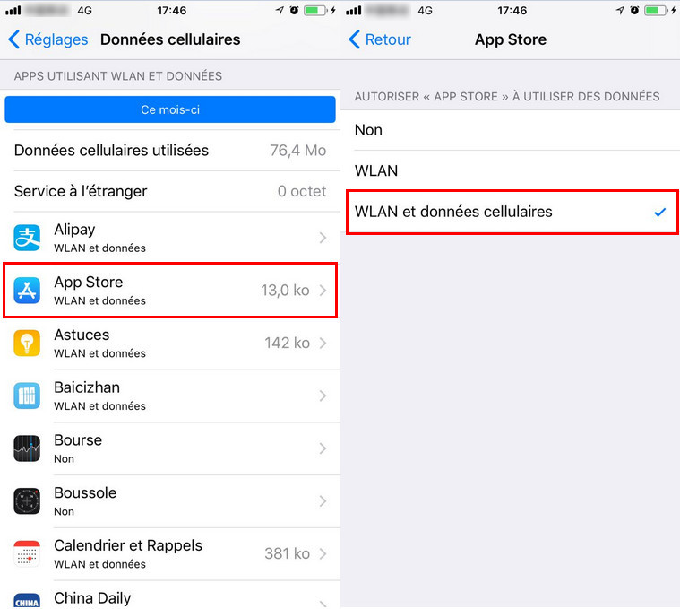 Activer les données cellulaires pour l’App Store