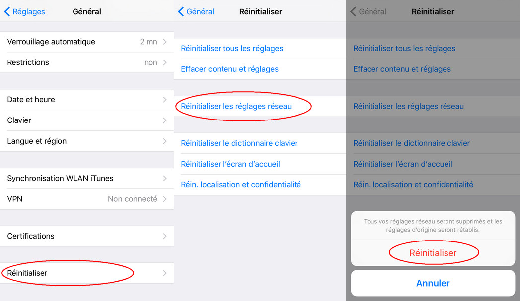 - Ouvrez Réglages > Général > Réinitialiser > tapez Réinitialiser les réglages réseau.