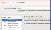du Superdrive d’un ancien Mac que vous avez toujours connecté au réseau domestique (filaire ou wifi), pour lire un disque optique ou pour en graver un. Vous pouvez aussi très bien utiliser un lecteur/graveur externe branché à l’un de vos Mac : il va l’exposer sur le réseau pour le rendre disponible aux autres. macOS a toujours la fonction de partage de ce dispositif.