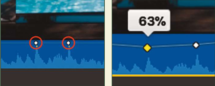 De façon plus modulée, enfoncer la touche Cmd et cliquer sur la ligne de niveau de son. Ensuite, ajuster selon désir.